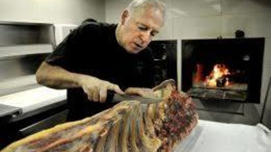 Etxebarri (Atxondo, #6). Sólo habla con el fuegoSegún los señores de Restaurant, que algo sabrán de esto, el mejor restaurante de Euskadi, el segundo mejor de España (sólo superado por el fantástico Celler de Can Roca) y el sexto del mundo mundial es un asador ubicado en el valle de Atxondo, comandado por un cocinero autodidacta y alejado de la mayoría de los tópicos de la alta cocina. No esperes un rosario de espumas y esferificaciones en casa de Víctor Arguinzoniz, ni siquiera un balde de fondos y salsas, pues allí prima el culto a un producto que, en la mayoría de las ocasiones, apenas se toca, no vaya a estropearse. El huraño parrillero, eso sí, ha seducido a la crítica internacional con su obsesión por extraer el perfume de las brasas (vaya surtido de maderas maneja para impregnar distintos aromas a sus platos) y con la invención de ingenios que le permiten arrimar al fuego género tan delicado como las angulas. ¡Hasta helado ahuma!