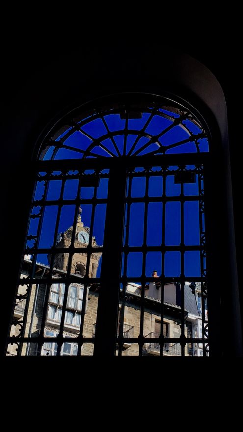 El edificio se encuentra en pleno ensanche neoclásico de Vitoria, en la antigua sede del Banco de España que antes fue teatro tras su inauguración en 1922. La fachada, después de años cubierta, ha recuperado ya su dominio sobre la manzana que preside. Su terraza da a la semidesconocida calle del Estatuto de Gernika de Vitoria.