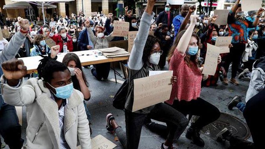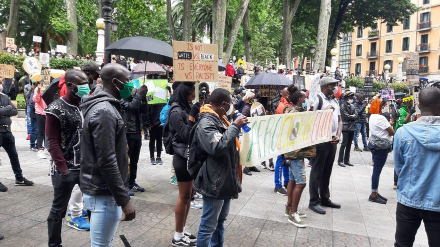 Las protestas por el asesinato de George Floyd, bajo la rodilla de un policía blanco en Mineapolis (EEUU) han llegado a las tres capitales vascas. Miles de personas se han concentrado para reclamar que “el racismo en Euskadi también mata y discrimina”, una consigna que se ha podido leer en cantidad de carteles a los que les seguía el mensaje “tu silencio es cómplice”.