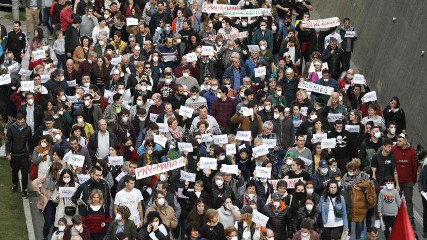 Miles de personas de los pueblos de Eibar, Ermua, Elgeta y Mallabia se han lanzado este sábado a las calles llevando mascarillas a modo de denuncia, e incluso algunos se han vestido con trajes de protección, para protestar ante la falta de seguridad y la mala gestión de la Administración con lo referente al vertedero y la búsqueda y rescate de los dos desaparecidos.