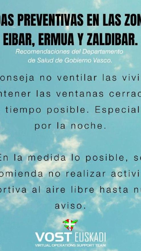 En aquel momento, el departamento de Medio Ambiente, liderado por Iñaki Arriola, admitió que se habían detectado “picos no preocupantes” de contaminación provocados por los “compuestos orgánicos volátiles” desprendidos tras el incendio que se desencadenó horas después del derrumbamiento y que aún no han logrado extinguir. Ahora, una semana después de que el Gobierno vasco lanzara ese mensaje de tranquilidad y seguridad a la población, las advertencias han cambiado radicalmente transformando la serenidad en alarma: a partir de ahora no se recomienda a los vecinos de Eibar, Ermua, Elgeta y Zaldibar abrir las ventanas ni realizar deporte al aire libre hasta nuevo aviso.