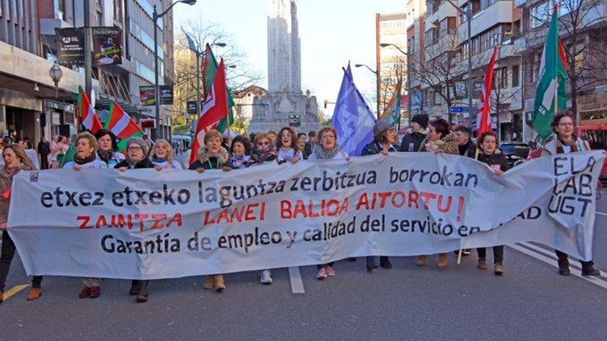 “Se recortan cada día las horas de servicio, en total, más de 8.000 en los últimos cinco años; sufrimos perdidas salariales y derechos laborales; padecemos las consecuencias de la contratación a tiempo parcial y la imposición de las decisiones de las empresas subcontratadas que sólo velan por mantener sus millonarios beneficios con dinero público”, han denunciado las trabajadoras, tras una manifestación que ha recorrido el centro de Bilbao.