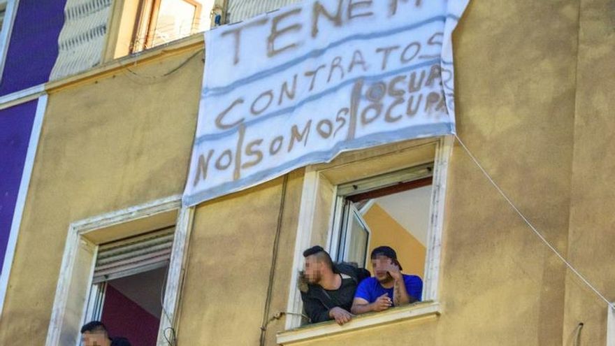 “Esta zona siempre ha sido muy tranquila, hasta que llegaron. Aquí todos sabemos que lo que pretenden trayendo a esta gente es echar a los vecinos de toda la vida para derribar el edificio y construir. Son unas casas muy golosas”, aseguran en el barrio. Una de las familias que cuenta con un contrato precario por parte de la inmobiliaria -hay al menos tres- ha descolgado un letrero gigante en su ventana en el que se lee “Tenemos contratos, no somos 'okupas” a lo que una de las vecinas, que a pesar de la conflictiva convivencia de los últimos años se resiste a abandonar su piso, le ha respondido con otro cartel: “La Ley la tiene el juez y no vosotros”.