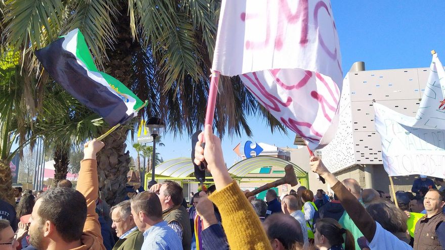 Empieza la manifestación de agricultores en Mérida, tras protestar ante Carrefour