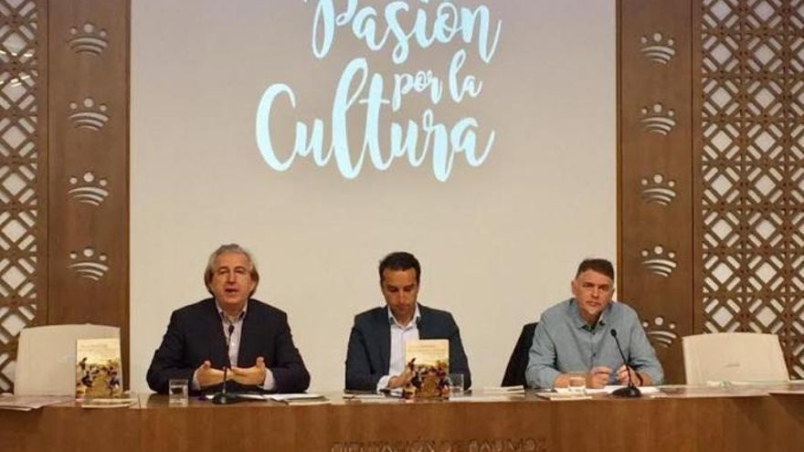 El diputado provincial de Cultura, Ricardo Cabezas; el presidente de la Asociación para la Recuperación de la Memoria Histórica de Extremadura (ARMHEX), José Manuel Corbacho; y el coordinador de la publicación, Ángel Olmedo, presentaron el libro en rueda de prensa.
