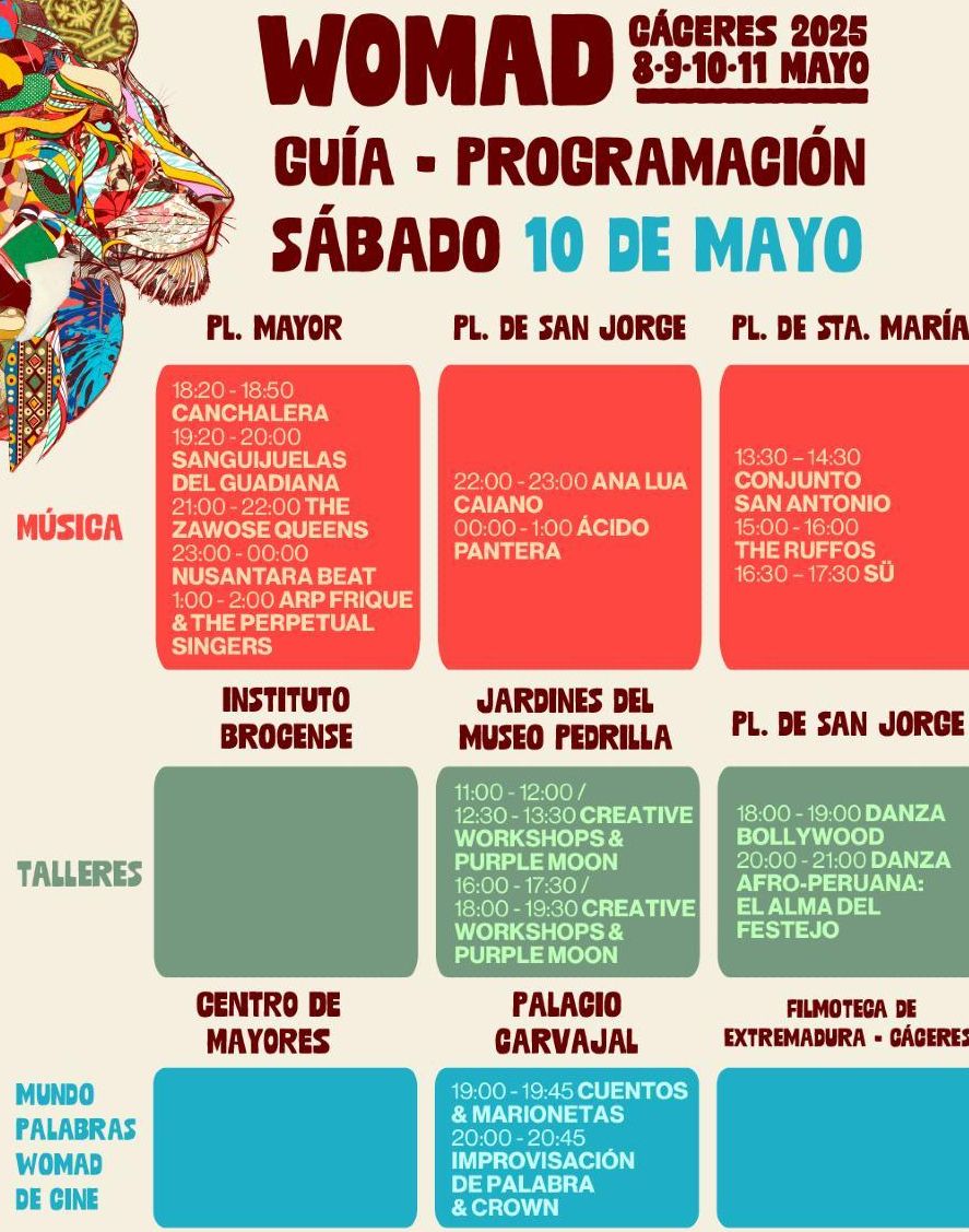 La ciudad de Cáceres disfruta de su Womad en la que será, este sábado, su tercera jornda, con una programación de diez conciertos a partir de la una y media de la tarde en tres escenarios, además de actividades paralelas y complementarias.