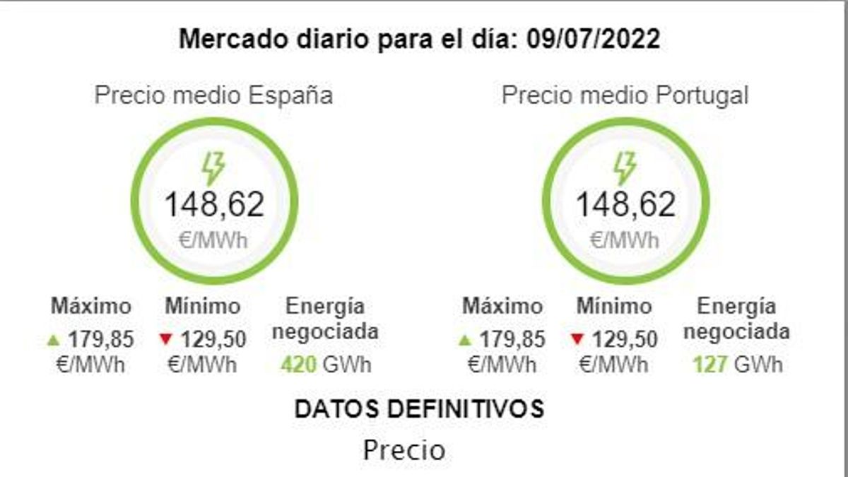 Durante ese período de 16 días, siguiendo con los cálculos del Ejecutivo luso, los consumidores de su país y de España han pagado un precio medio 237,84 € el megavatio/hora, frente a 275,90 si no hubiera existido la excepción ibérica.