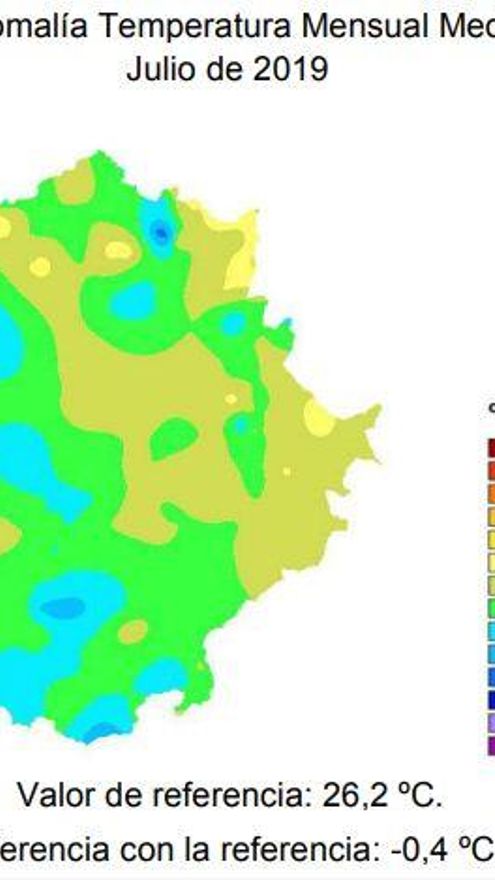 El pasado mes de julio fue de temperaturas máximas “frías” según el informe de la Agencia Estatal de Meteorología (Aemet), con 0,5 grados por debajo de lo normal, y también resultaron inferiores en general las máximas y mínimas en toda la región, del orden de 0,4 grados lo que constituye una anomalía que sin embargo entra dentro de lo habitual.