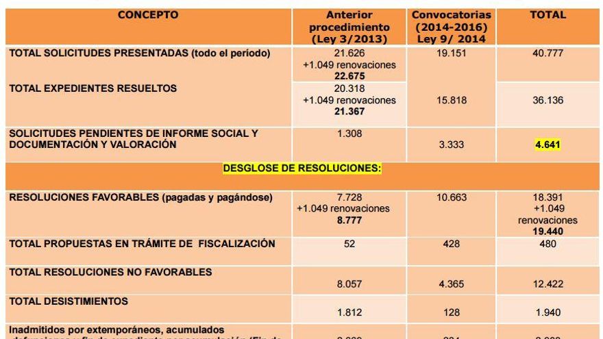 En el capítulo de renta básica se hace constar que de las 40.777 solicitadas hasta el momento se están pagando 19.440; entre otras situaciones hay 12.422 denegadas y 4.641 en estudio.