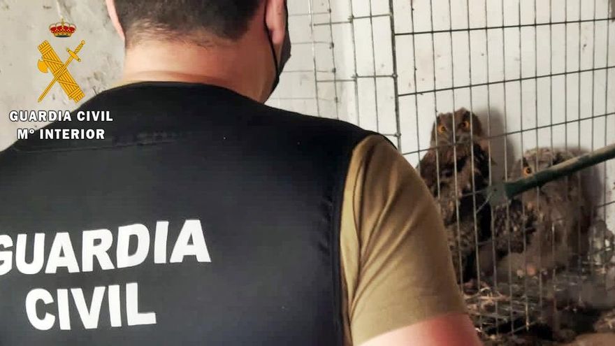 La Guardia Civil intervino los búhos que han sido trasladados al Centro de Recuperación de Fauna Silvestre (AMUS) e investiga el origen y destino que se le pudiera dar a estas aves.