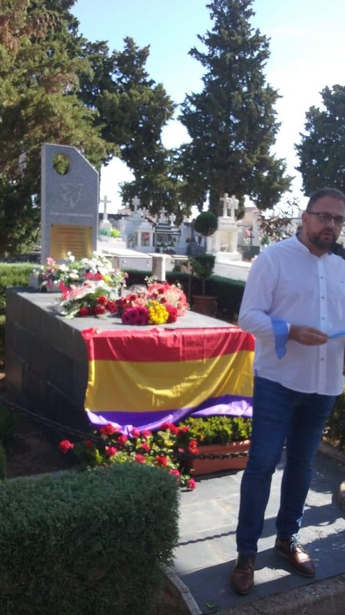 Ha sido junto a un memorial levantado en el centro del camposanto, que estaba cubierto con una bandera republicana y después ha recibido ofrendas de flores, en este recuerdo promovido este domingo por la asociación de la memoria histórica de Mérida y comarca, y el Partido Socialista local.