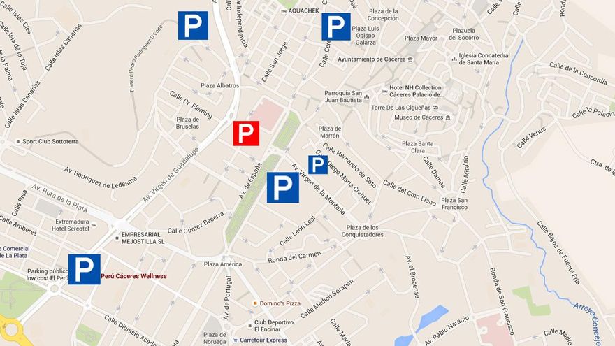 2. La clave de la necesidad del parking reside en la demanda de plazas de aparcamiento. En esa misma zona, Cáceres cuenta con hasta 5 parkings, uno de ellos gratuito (aparcamientos del Parque del Príncipe), en total 1.400 plazas. De los cuatro parkings privados, dos de ellos nunca han colgado el cartel de completo y los otros dos afirman haberlo hecho solo en ocasiones especiales como Semana Santa o WOMAD. Atendiendo a las plazas disponibles por horas, el rendimiento aproximado el resto del año es del 60% en el caso del Parking Cánovas, 40% Obispo Galarza, 20% el aparcamiento del Parque del Príncipe y aproximadamente del 15% en el restante. El parking situado en Avenida Virgen de la Montaña es un caso especial; afirma llenar el 90% ya que tiene una clientela fija afianzada por su trato cercano. Como podemos comprobar, sobran plazas suficientes para cubrir la demanda de aparcamientos. Y por si aún fueran pocos, ahora se abren al público dos obras terminadas de aparcamientos en superficie (con un coste de 152.000 euros) en espacios junto a los juzgados y el Nuevo Cáceres, que proporcionarán en total 273 plazas para los conductores.