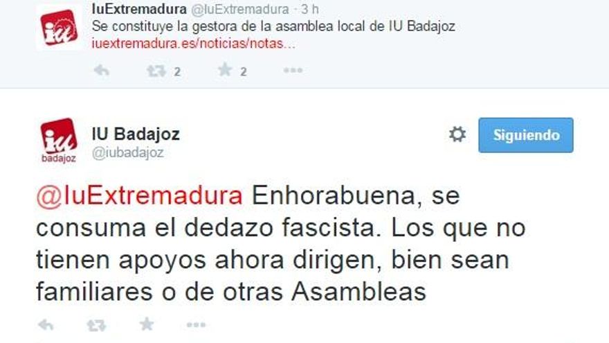 El órgano de dirección de Badajoz asegura que se ha enterado por la prensa del nombramiento de la gestora y de sus componentes. No se da por aludido. Ha sido en las redes sociales donde IU Badajoz ha dejado clara su postura al mostrar sin complejos que la dirección ha consumado un “dedazo”, mediante el que quienes no tienen apoyos, ahora dirigen Izquierda Unida en la capital pacense.