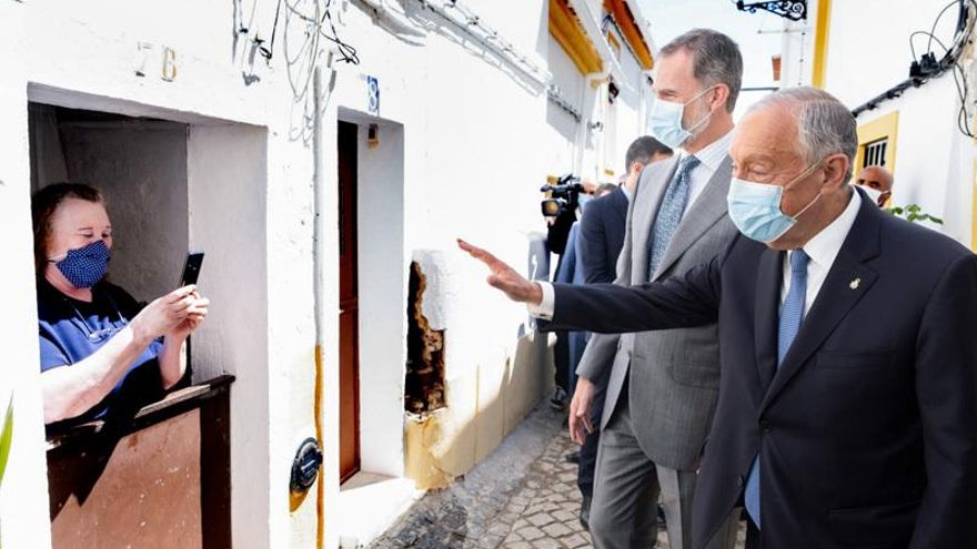 Tras un paseo por la explanada, dieron otro por las callejuelas históricas y también tuvieron un encuentro y charla privada en un hotel recientemente abierto; al contrario que en Badajoz, hubo cercanía a los vecinos, con quienes charlaron tras acercarse Rebelo de Sousa y el rey.