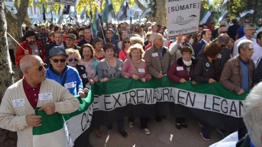 La movilización ha sido convocada por el Pacto Social y Político por el Ferrocarril en Extremadura, en el que confluye el Gobierno regional y los distintos actores sociales y económicos de la región.