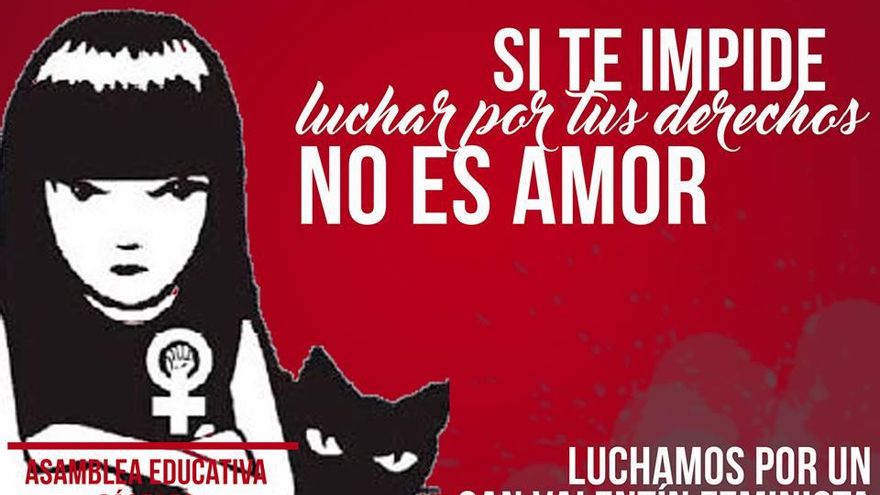 Campaña feminista de la Asamblea Educativa de Cáceres para un San Valentín libre de estereotipos