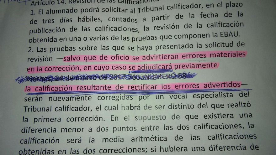 No se habían valorado, afirma, partes de ejercicios, o simplemente ante la ausencia de errores “me valora con un punto menos de la calificación total”. Pidió soluciones en la Universidad y “nadie supo dármelas, no existían mecanismos para arreglar nada, incluso llegaron a decir ‘no podemos hacer nada aunque lleves razón’ ”. Su exigencia es que al haber habido errores materiales y de bulto en la primera corrección, esa nota fuera anulada de oficio.
