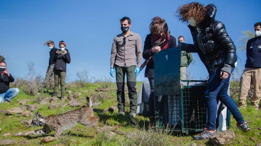 Extremadura ha liberado este lunes a los dos primeros linces ibéricos nacidos en cautividad de los siete que se prevé soltar esta campaña 2021, todos ellos en la zona del río Matachel, en la provincia de Badajoz