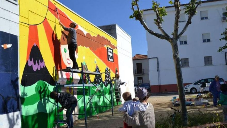 Explica José Manuel Atienza, del colectivo Memoria de Futuro de Alburquerque, que el mural se sitúa a las puertas del colegio. El resultado es una creación muy colorida, con un toque naif, que desea contar las historias que hay detrás. Con el propósito de mostrar la memoria democrática a las nuevas generaciones.