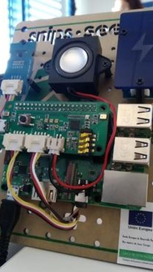 Uno de los dispositivos desarrollados en el proyecto es el asistente de voz como recordatorio de medicamentos. Se trata de un altavoz inteligente (dispositivo Snipps) que recuerda la toma de medicamentos. A través de una aplicación controlada por el personal sanitario o cuidador se introduce el patrón de medicación del paciente vía bluetooth y el asistente de voz recordará la toma de medicamentos.