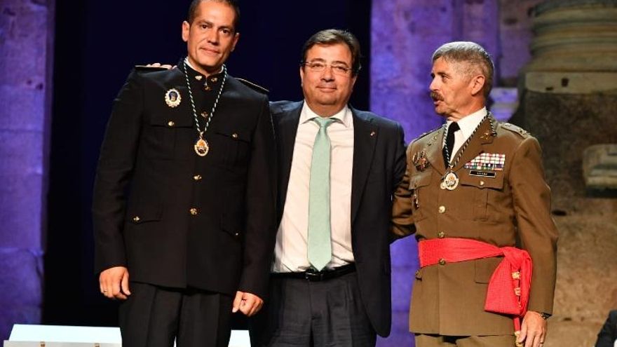 Por último el presidente de la Junta, Guillermo Fernández Vara, ha sido el encargado de entregar el reconocimiento ex-aequo a la Unidad Militar de Emergencias y los Cuerpos de Policías Locales de Extremadura.