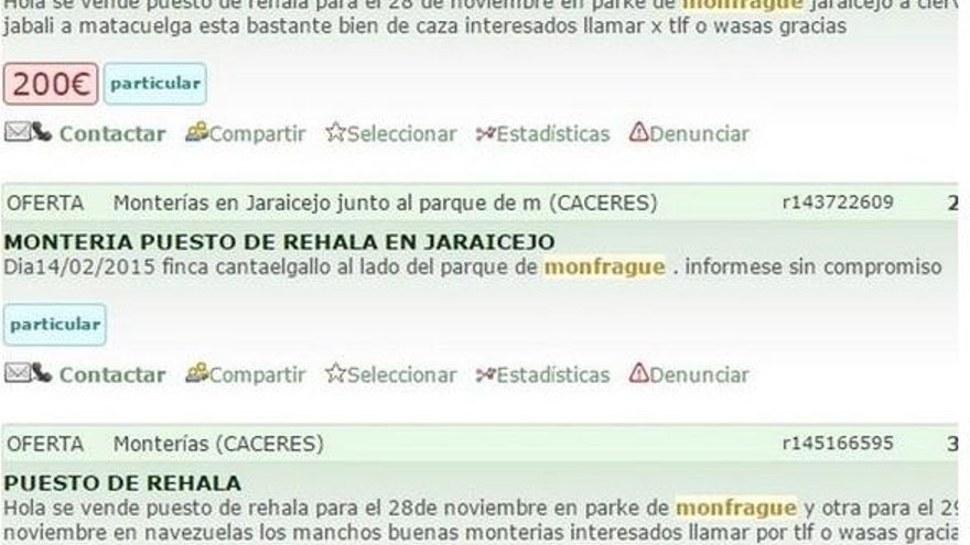 Algunas monterías previstas se celebran en fincas de Monfragüe que tienen hasta dos terceras partes en el interior del parque, siendo muy complicado determinar que los cazadores no sobrepasan esa línea. Sin embargo Ecologistas Extremadura dice que en algunas ocasiones la parte de la finca que tiene vegetación y condiciones óptimas para albergar a ciervos y jabalíes es la que está dentro del parque, y no al revés.