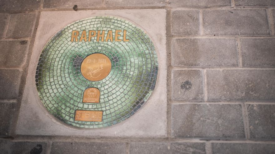Raphael es el primer artista que firma su sello, un disco, en el paseo Viam Musicorum, Camino de la Música, que se ha inaugurado este jueves en la calle José Ramón Mélida, de Mérida, en la que está el Museo de Arte Romano, y la que conduce al Teatro donde tendrá lugar la nueva edición del Festival Stone & Music, promotor de la idea junto al Ayuntamiento.