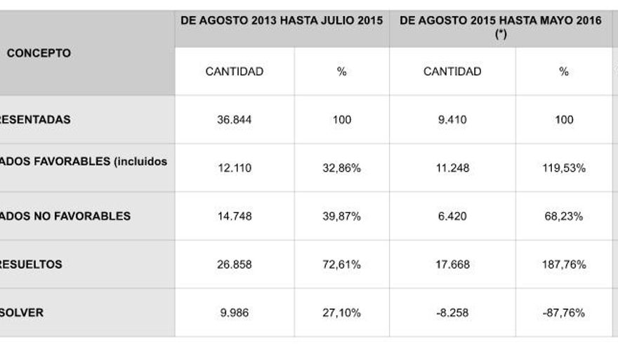 Del total de expedientes, 23.358 han sido finalizados con resultado favorable y 21.168 han sido desestimados, detalla la Agencia Efe. El total de expedientes resueltos se cifra en 44.526, lo que representa el 96 por ciento de todas las solicitudes presentadas, con lo que sólo un 3,74 por ciento está pendientes de resolución.