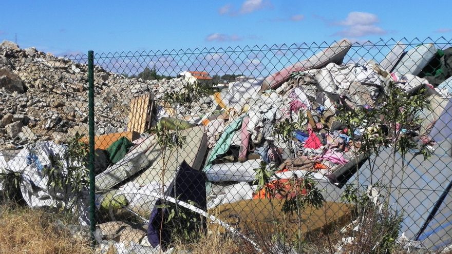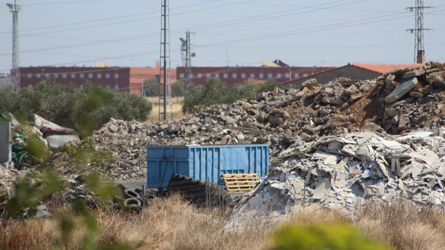 Más de 60 viviendas de Mérida conviven con una planta de reciclaje y residuos de la construcción a las puertas de su casa. Son montones de residuos que están conformando una plataforma que supera el nivel del suelo, almacenados directamente en el terreno según denuncian.