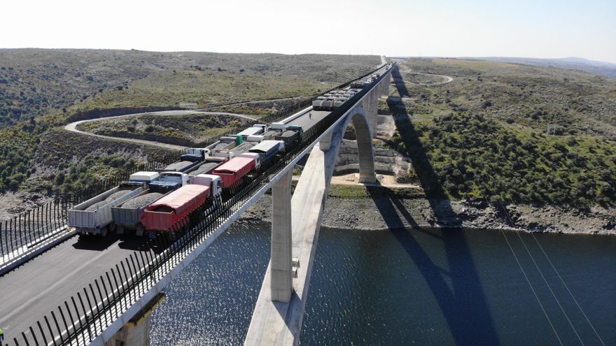 El viaducto del AVE sobre el Tajo está terminado y supera la carga con 48 camiones de 38 toneladas