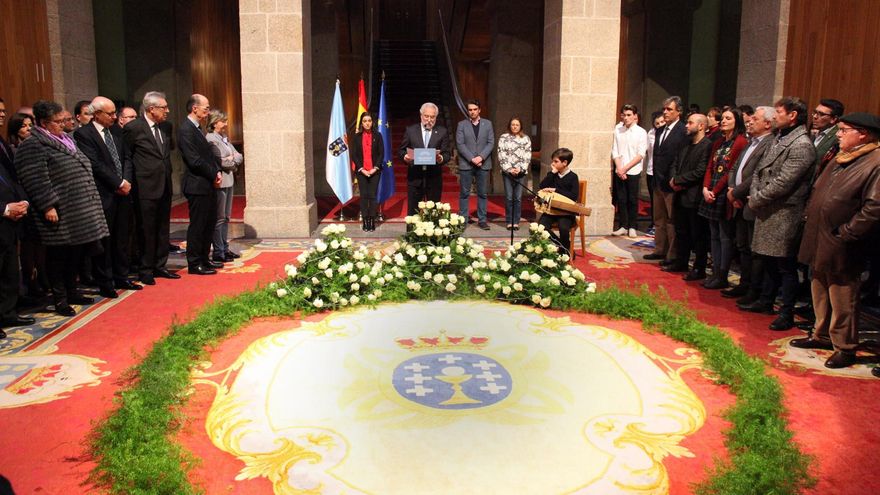 En el vestíbulo principal del Parlamento de Galicia, escenario del acto, se colocaron 193 rosas blancas, aprisionadas por alambre de espino y a un lado del escudo de Galicia. “Sirvan estas flores para simbolizar el reconocimiento a las víctimas de los campos nazis en la Galicia actual, una Galicia democrática, dotada de sus propias instituciones de autogobierno surgidas de la Constitución española y del Estatuto de Autonomía; una Galicia que, liberada para siempre de las ataduras de la dictadura, cobija el recuerdo de estas y de todas las víctimas, con el cariño y con la dignidad que todo ser humano merece, en especial los que lucharon por la libertad y contra el fascismo”, destacó Santalices, que recordó especialmente a los exiliados españoles que, al final de la guerra civil, en 1939, fueron confinados en campos de concentración en el sur de Francia en condiciones infrahumanas.