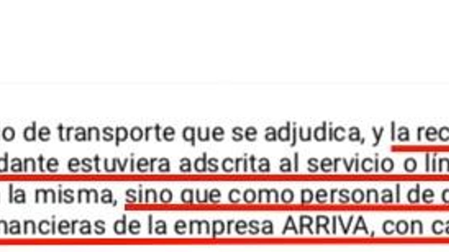 Arriva, dice esa otra sentencia, “no ha probado que la trabajadora demandante estuviera adscrita al servicio o línea adjudicada a la UTE ni a ningún servicio específico relacionado con la misma, sino que como personal de gestión financiera, era la encargada de realizar tareas contables y financieras de la empresa Arriva, con carácter general”.