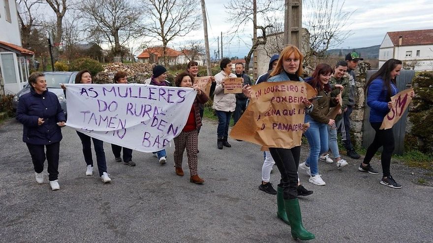 “As mulleres do rural tamén poden ir ao bar” (Las mujeres del rural también pueden ir al bar). Ese era uno de los carteles que portaban las mujeres que el pasado 8M recorrieron Loureiro, en Nogueira de Ramuín, en la que fue la primera manifestación de la historia de esta pequeña aldea. La protesta feminista juntó mujeres de entre 14 y 90 años en una imagen nunca vista en aquellos lares y tan extraña en el diseminado y despoblado rural gallego.