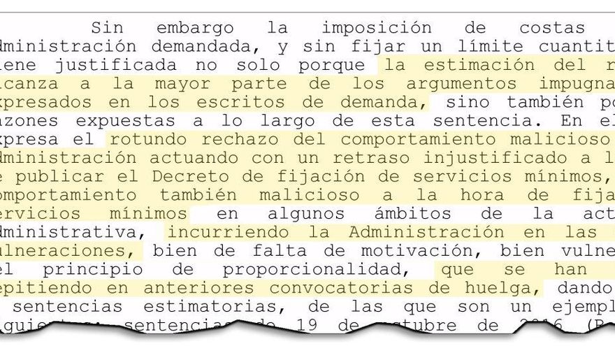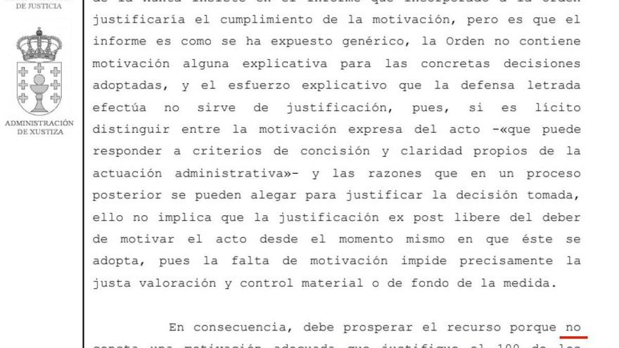 “Nada se concreta sobre la necesidad de que sea precisamente el 50% el porcentaje que deba permanecer atendiendo el servicio en las jornadas de huelga”, insiste el tribunal, para criticar también que el Gobierno gallego pretendiese justificar esa cifra con informes que aportó posteriormente al proceso judicial pero que no fueron incluidos en el expediente que había establecido previamente los servicios mínimos.