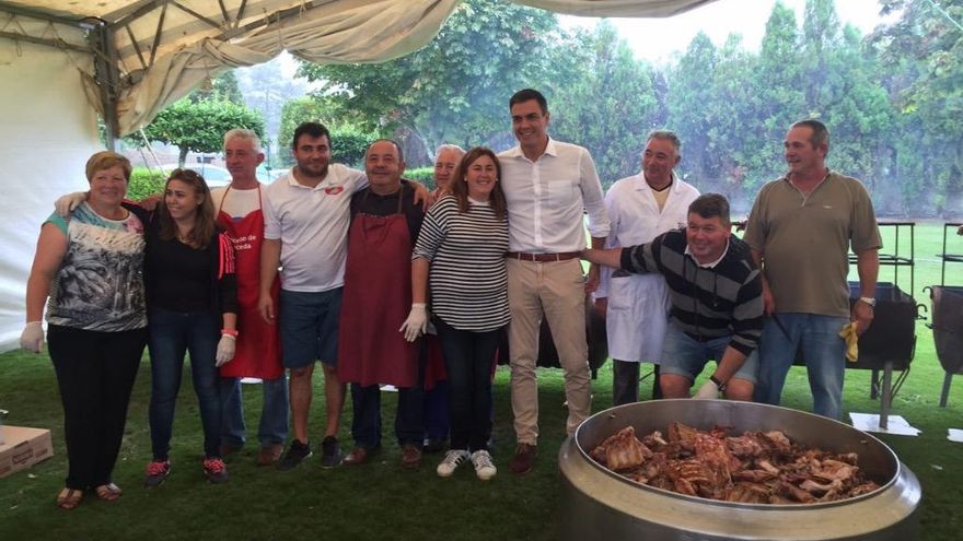Tras los discursos, los socialistas gallegos han compartido con Sánchez una comida popular bajo la lluvia. Los parrilleros contratados para la fiesta ya trabajaban mientras el líder del PSOE desgranaba sus ideas sobre un pequeño escenario. Cuando el aroma a costillas de cerdo llegó a las primeras filas, Sánchez interrumpió el hilo para decir: “Con este olor a churrasco, cómo me iba a perder yo esta comida”.