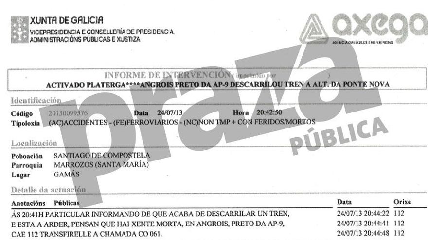 El propio Feijóo avanzó en varias ocasiones que, si era citado a comparecer en el Congreso, iría encantado a relatar el funcionamiento de los servicios de emergencia de Galicia. Pero a pesar de que el accidente se produjo a cuatro kilómetros de la plaza del Obradoiro y en la víspera del día grande de Santiago, con un dispositivo especial ya activo en la ciudad de sanitarios, bomberos o policías, su coordinación por parte de la Xunta fue mejorable. Así lo evidencia el listado de llamadas y de actuaciones de los servicios de emergencias del 112 de aquella noche, desvelado en su momento por El País.