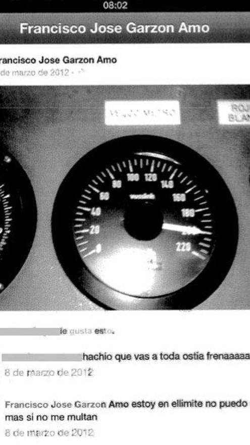 Igualmente, Garzón criticó en su intervención escrita que tras el accidente se pusiese como supuesto ejemplo de que “me encantaba correr con los trenes” una fotografía de su Facebook, que la propia Policía presentó en el juzgado como prueba, con un velocímetro indicando 200 kilómetros por hora que había sido sacada meses antes, en un viaje de formación en la que conducía otro maquinista. “Una velocidad de 200 para un tren de alta velocidad es normal, como es normal 300 o más”, destacó. Son velocidades, dijo, a las que están obligados a ir.