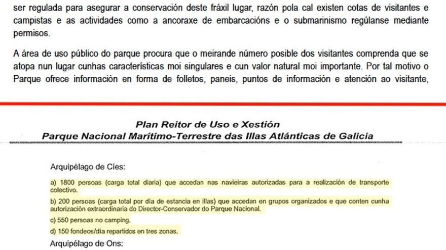 En cuanto al control del número de visitantes a las islas, elemento que provocó el actual aceleramiento por parte de la Xunta de unos procesos que tenía aparcados (la elaboración del plan rector y la candidatura a la Unesco), el documento ahora expuesto al público no dice nada.