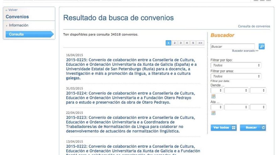 Este freno en la actualización provoca que quien acceda al espacio habilitado para la consulta de convenios solo pueda obtener, a finales de enero de 2016, datos hasta abril de 2015. Para acceder a la información de convenios más recientes es necesario sumergirse en el Diario Oficial de Galicia, donde las diversas consellerías sí continúan cumpliendo, con ritmos diversos, el deber legal de publicar cuatrimestralmente una relación de los convenios que firman.