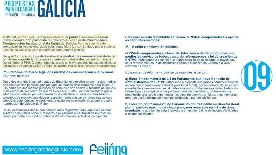 Esta nueva contratación llega en la recta final de una legislatura que, como las anteriores, volverá a finalizar sin que la Xunta envíe al Parlamento para su aprobación la ley de publicidad institucional que el PP gallego ha prometido en numerosas ocasiones. En el programa electoral que Feijóo defendió en la campaña tras la que logró ser presidente por primera vez, hace una década, los populares manifestaban el compromiso de “aprobar una Ley de Publicidad y Comunicación Institucional de la Xunta de Galicia” porque “la política de comunicación institucional debe estar sometida a la ley”.