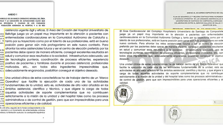 Como reveló Praza.gal, las cautelas del Gobierno gallego con la protección del “secreto comercial” y la “propiedad industrial” de Medtronic contrastan con la publicación íntegra de un acuerdo prácticamente idéntico firmado con la misma empresa por la Generalitat de Catalunya en el año 2015, en tiempos de la presidencia de Artur Mas. El pacto de la compañía estadounidense con las autoridades sanitarias catalanas tenía como objetivo desarrollar en el hospital de Bellvitge un programa muy semejante al que la Xunta le permite realizar en el Clínico compostelano y, una vez firmado, fue incluido cómo referencia en el Diari Oficial de la Generalitat y publicado con su anexo en el portal de transparencia del Institut Català de la Salut, donde aún puede ser consultado.