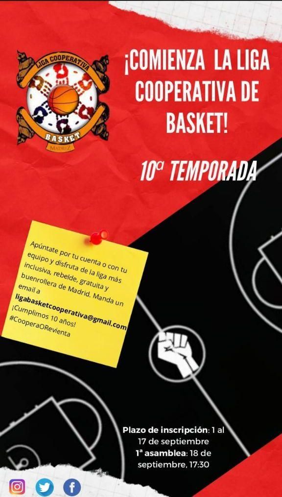 Hasta el día 17 de septiembre podéis apuntaros a la Liga Cooperativa de Baloncesto, una liga organizada asambleariamente en la que los equipos son mixtos, la participación es gratuita y los equipos se autoarbitran. Esta temporada es ya la décima para la liga más “inclusiva, rebelde y buenrrollera de Madrid”. Para conocer mejor la liga merece la pena recuperar lo que nos contaban con motivo de un artículo sobre deporte e individualismo: