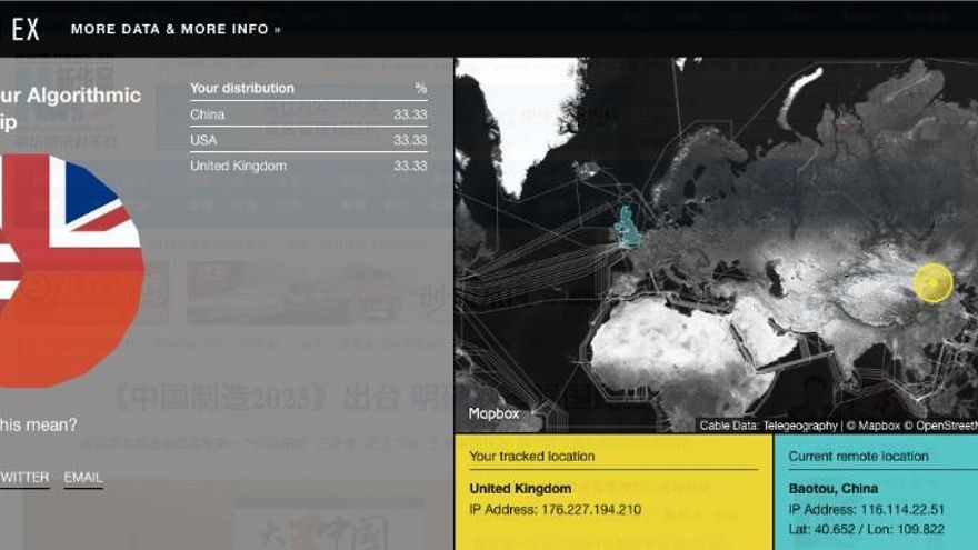 Desde la página, que Bridle ha creado en colaboración con Nat Buckley, cualquier interesado puede descargarse una extensión para el navegador que seguirá sus pasos por la Red para saber qué países visita. Esta pieza de ‘software’ rastrea tanto tu localización como el origen de cada página a través de las direcciones IP.