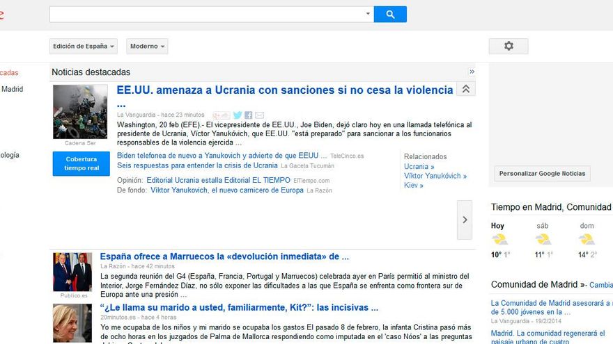 Google News es un servicio como puede ser el buscador. Un servicio donde haces cualquier búsqueda y aparecen todas las noticias sobre un determinado tema indexadas. Solo aparece el titular y un pequeño 'snippet'. Lo que hace Google News es dirigir a los usuarios a las noticias. Cuando te interesa una noticia haces clic y te vas a la fuente de origen. Entonces, estamos redirigiendo trafico continuamente hacia las páginas de los periódicos.
