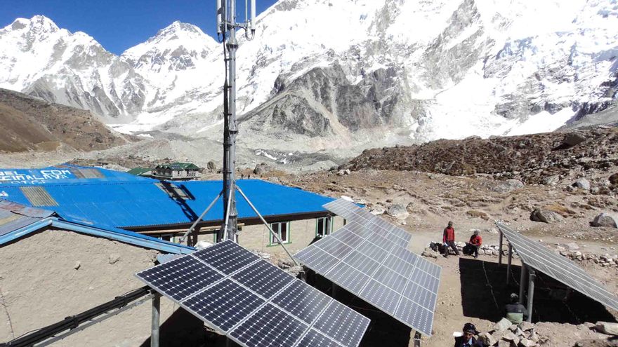 Las bajas temperaturas y las precipitaciones afectan también a las placas solares que suministran electricidad a la infraestructura de la empresa Everest Link, que brinda conexión wifi al campamento base. Un servicio de “internet extremo”, según reza su web, disponible en la montaña desde el 2014. Pero el fundador de la compañía, Tsering Gylatsen, comenzó su ambicioso proyecto mucho antes: en 2001, Gylatsen y un grupo de emprendedores nepalís crearon Namche Technical Support para brindar conexión a la zona.