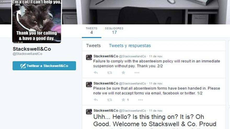 Generic Office Roleplay ya no solo se aloja en Facebook. David Frew acaba de inaugurar su cuenta en Twitter, diciendo que no se sancionará el uso excesivo de 'hashtags', aunque advierte que la dirección nunca se leerá el 'timeline'. La empresa virtual que simula existir en la realidad quiere conquistar las redes sociales.