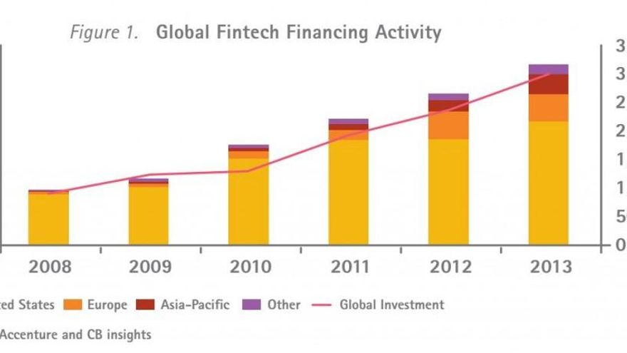 Enero: MasterCard, Lloyds, Amazon y Google anuncian una aceleradora 'fintech' en Londres. Febrero: BBVA compra por 85,4 millones Simple, una 'app' estadounidense que integra su propia VISA. Marzo: nace Spain Fintech Hub para que “España sea referente de innovación bancaria”. Abril: Telefónica, La Caixa y Santander lanzan Yaap, una 'app' de pagos y envío de dinero por el móvil. Mayo: Amazon lanza un programa para 'startups' de Fintech. Octubre: Apple lanza Pay, su sistema de pagos móviles (aunque Google tenía algo similar, Wallet, desde 2011). La semana pasada: BBVA anuncia un acuerdo con Dwolla, una 'startup' estadounidense que simplifica las transferencias móviles. Y eso sólo por nombrar algunos movimientos del sector. Sus números van así (y ya se oye que hay burbuja de valoraciones):