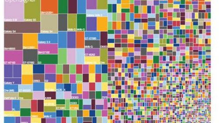 OpenSignal solo analiza a los usuarios que han descargado su 'app' (ha estudiado 682.000 dispositivos), por lo que el mercado de dispositivos Android podría ser aún más grande de lo que refleja su informe (por ejemplo, Google Play Store no está disponible en China). Un gigantesco ecosistema que se ha convertido en todo un reto para los programadores, que deben optimizar las versiones de sus 'apps' para que se desenvuelvan con soltura en un sinfín de escenarios diferentes.