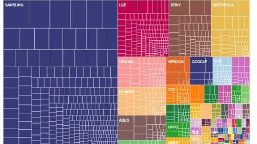 Samsung se mantiene como líder de este mercado, controlando un 37,8% del pastel de dispositivos Android frente al 43% de 2012, y su Galaxy S III sigue siendo el móvil más popular tres años después de ver la luz. Sony ocupa la segunda posición, aunque a mucha distancia de la compañía surcoreana: sus móviles y 'tablets' representan un 4,8% por ciento del total. LG, Motorola, HTC, Huawei, Lenovo, ZTE o Xiaomi son otras de las compañías que más dispositivos venden en un mercado totalmente fragmentado.
