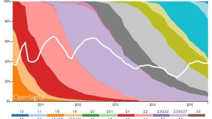 Los datos muestran esa dispersión, si bien desde OpenSignal han observado una ligera reducción en la fragmentación respecto al año pasado: los dispositivos que cuentan con la versión dominante, KitKat, han aumentado en los últimos doce meses.